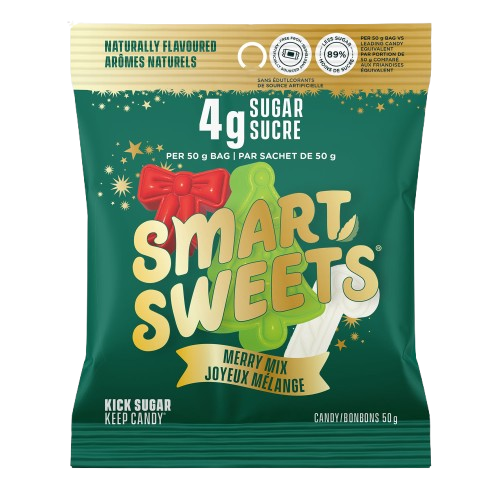 Sweet and juicy with a festive twist, Merry Mix comes with two fruity flavours per bag: Green Apple and Strawberry. Ingredients Isomalto-oligosac...