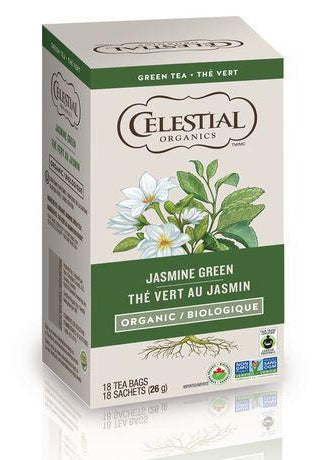 Celestial Organic Jasmine Green Tea has authentic green tea leaves lightly scented with delicate jasmine. Ingredients Organic Jasmine Green Tea.
