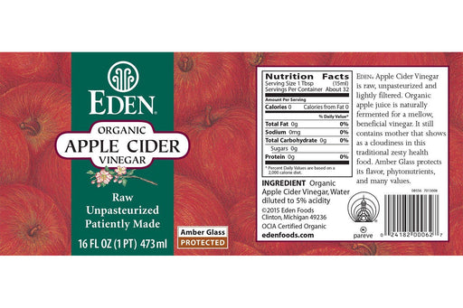 Eden Organic Apple Cider Vinegar is naturally fermented with 'mother' of vinegar, a friendly natural bacteria culture similar to 'starter' used to ...