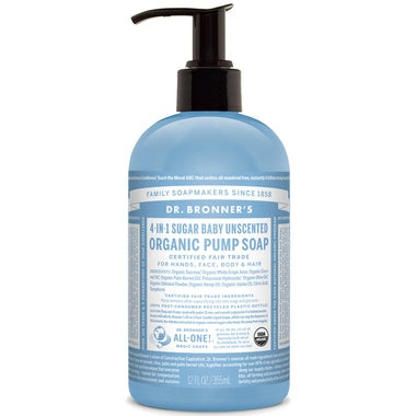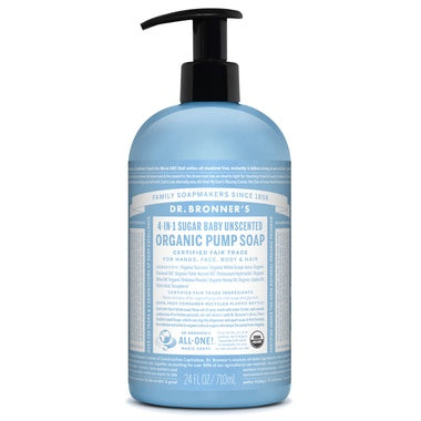 Dr. Bronner's 4-in-1 Sugar Baby Unscented Organic Pump Soap is certified by the same National Organic Program that certifies food. Our pump soaps a...