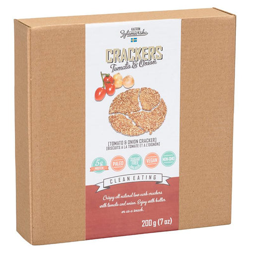 LOW CARB cracker in the amazing flavour of VEGAN and PALEO friendly savouriness of real tomato & onion. The perfect snack or side to your soup ...