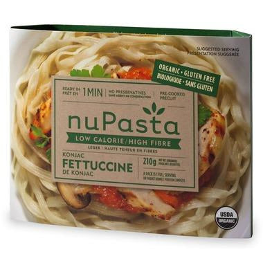Nupasta Organic Konjac Fettuccine Pasta is a low calorie and gluten free pasta. Texture is chewy and similar to al dente pasta (firm to bite). Made...