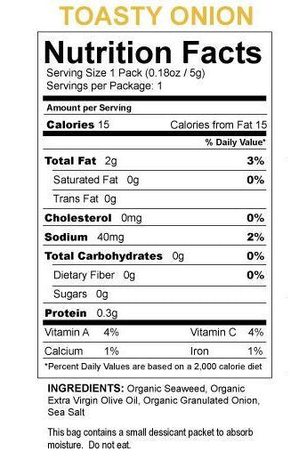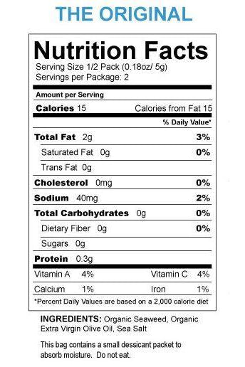 With 30 calories per pack, SeaSnax is a healthier alternative to chips and a tasty way to add sea vegetables to a healthy eating lifestyle. Ingre...
