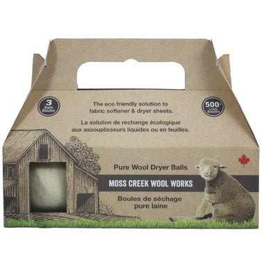 Hand Made in Canada, Moss Creek Wool Works Wool Dryer Balls are a nifty invention that will save you time and money!Available in natural colours (n...